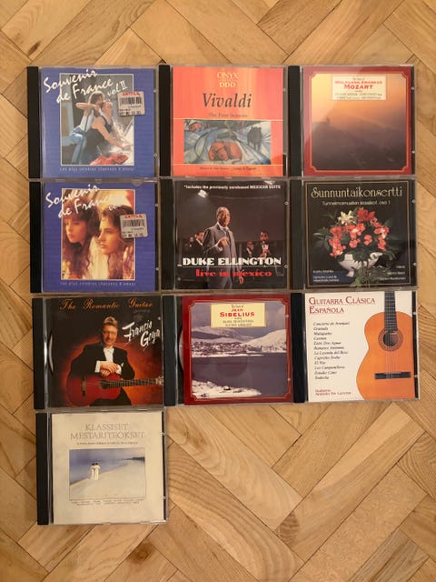 20 €Sibeliuksen C-kasetit (4 kpl), Mozartin C-kasetit (4 kpl)Helsinki, Malminkartano, Uusimaa15.11.Lisää suosikiksi.