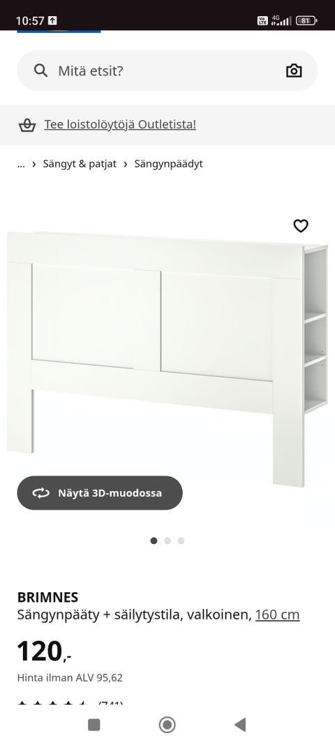 Antiikki ja taide (67)Auto-, vene- ja moottoripyörätarvikkeet (8)Elektroniikka ja kodinkoneet (58)Eläimet ja eläintarvikkeet (136)Koti ja sisustus (4 245)Lapset ja vanhemmat (295)Liiketoiminta ja palvelut (11)Piha ja remontointi (22)Urheilu ja ulkoilu (29)Vaatteet, kosmetiikka ja asusteet (165)Viihde ja harrastukset (242)
