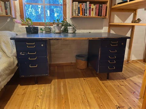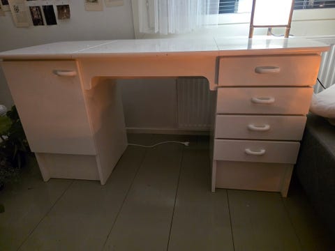Puinen, valkoinen kirjoituspöytä