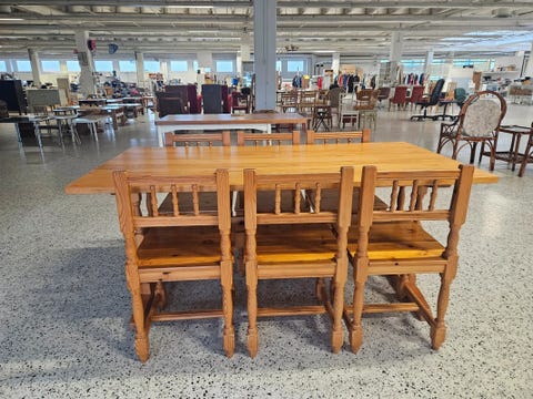 75 €Mäntyinen ruokapöytä ja 6 tuolia LOPPUUNMYYNTIOulu, Raksila, Pohjois-Pohjanmaa9 tHuonekalumesta Lisää suosikiksi.
