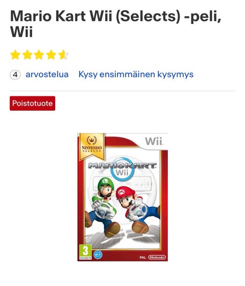 Torista löydät Nintendo Wii -pelit käytettynä. Kurkkaa 1 295 ilmoitusta kategoriassa Videopelit ja konsolit, joissa myydään näitä ja koe löytämisen ilo! Ostamalla käytettyä voit säästää rahaa ja antaa samalla Nintendo Wii -pelille uuden elämän.