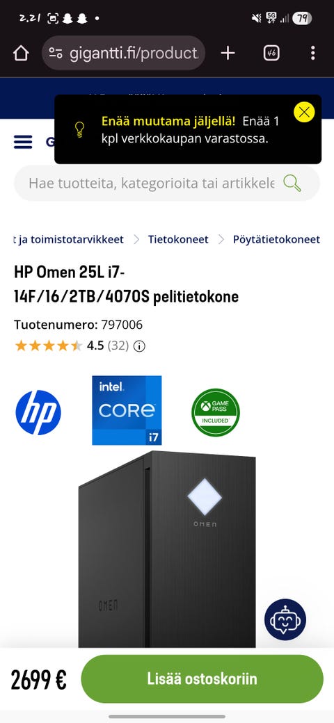799 €Ryzen 7 5800X / 16GB RAM / RTX2080SuperRovaniemi, Niemelänkangas-Korvanniemi, Lappi11.12.2025Lisää suosikiksi.