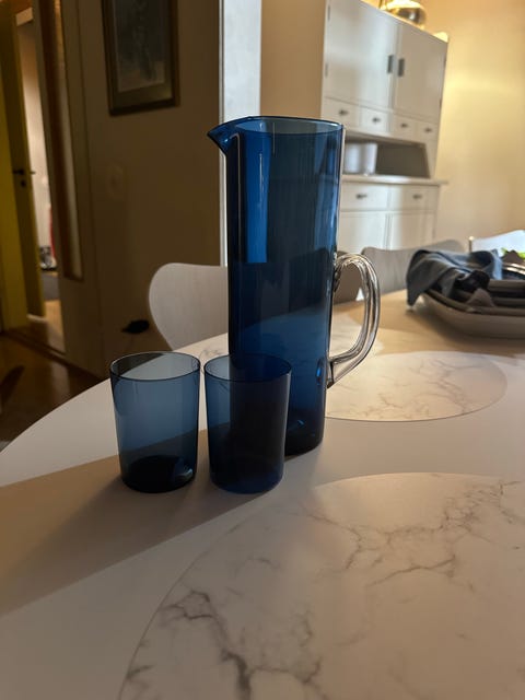 50 €Iittala Sininen lasinen kannu ja kaksi lasia IittalaKemi, Torvinen-Vainio, Lappi1 pvLisää suosikiksi.
