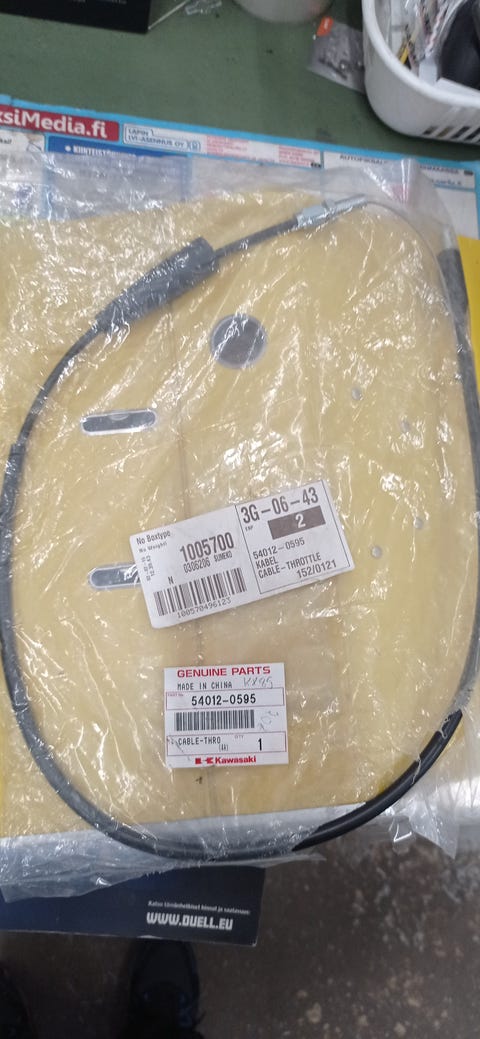 39 €UUSI ALKUPERÄINEN KAASUVAIJERI KAWASAKI KX 250F 54012-0591Kemi, Ristikangas-Kivikko, Lappi10.9.2025Prima-Rauta R. Kamppinen OyLisää suosikiksi.