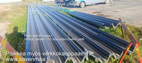 1 €Kattopelti.pitkää kattopeltiä,polkuhintaan,toimitus koko Suomeen!Nivala, Nivala Keskus, Pohjois-Pohjanmaa12.7.2025Verkkokauppa SavenmaaLisää suosikiksi.