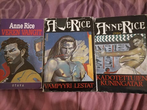 75 €Anne Rice - Vampyyri Lestat trilogia (3 kirjaa) suom. kielisetPyhäjärvi, Pellikkaperä, Pohjois-Pohjanmaa2 pvOsta hetiLiikkeessä oleva kuorma-autoToriDiiliLisää suosikiksi.