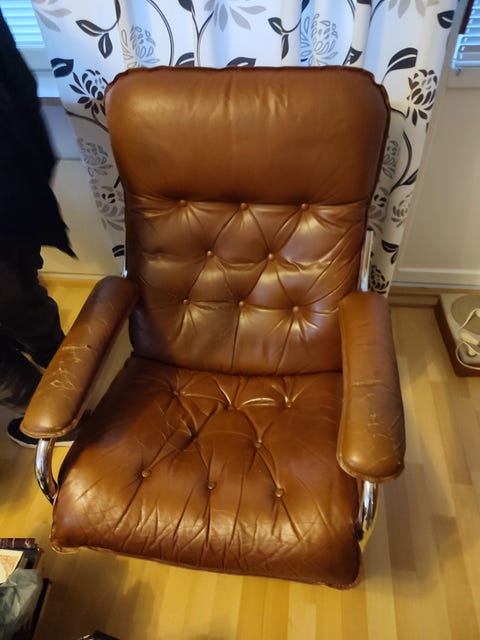 445 €Nahkainen 2-istuttava nojatuolisohva ruskea kromijaloillaOulu, Iinatti, Pohjois-Pohjanmaa14.2.Lisää suosikiksi.