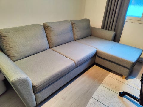 Hakusessa vaalea vuodesohva