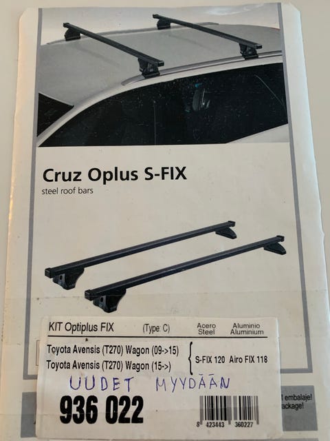 50 €Cruz Oplus S-FIX teräksinen kattoteline Toyota Avensis WagonilleOulu, Hiukkavaara, Pohjois-Pohjanmaa52 minLisää suosikiksi.