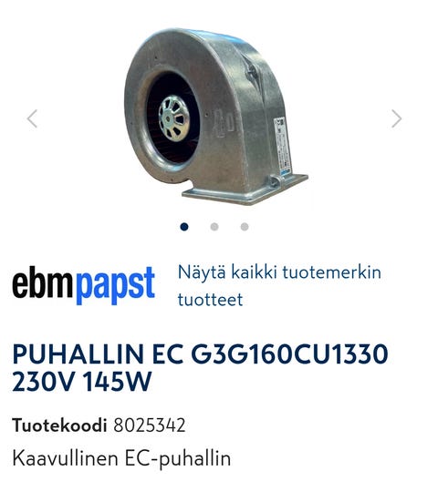 450 €PUHALLIN EC G3G160CU1330 230V 145W PUHALLIN EC G3G160CU1330 230V 145WOulu, Kontio, Pohjois-Pohjanmaa2 pvLisää suosikiksi.