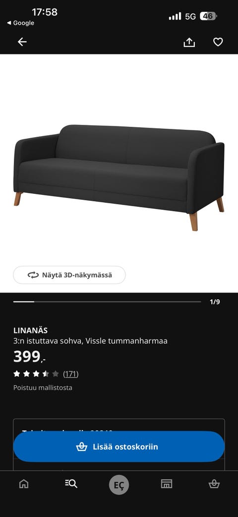 240 €3-istuttava sohva, ilmainen kuljetus/Free delivery.Oulu, Äimärautio, Pohjois-Pohjanmaa1 tKalusteonlineLisää suosikiksi.