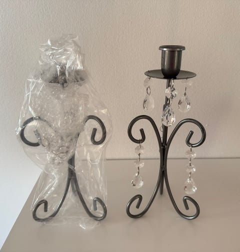 15 €Kaksi metallista kristallikoriste kynttilänjalkaa, uusia!Kauhava, Ylihärmä Keskus-Vesiluoma, Etelä-Pohjanmaa26.11.Lisää suosikiksi.