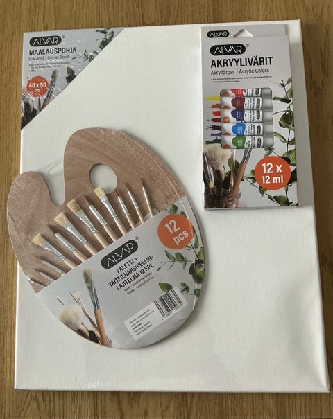 10 €Alvar maalaustarvikesetti akryylivärit siveltimet ja maalauspohjaSeinäjoki, Huhtala, Etelä-Pohjanmaa1 pvLisää suosikiksi.