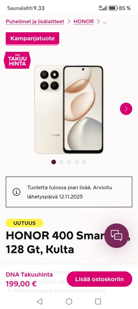 100 €Honor 400 SmartSeinäjoki, Seinäjoki Keskus, Etelä-Pohjanmaa6 tOsta hetiLiikkeessä oleva kuorma-autoToriDiiliLisää suosikiksi.