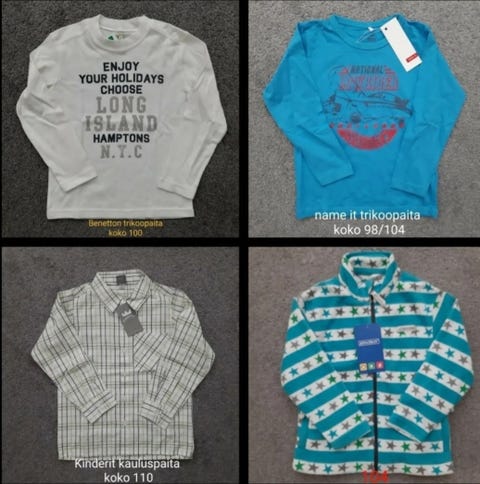 Antiikki ja taide (2 175)Auto-, vene- ja moottoripyörätarvikkeet (9 773)Elektroniikka ja kodinkoneet (6 148)Eläimet ja eläintarvikkeet (2 043)Koti ja sisustus (25 412)Lapset ja vanhemmat (21 682)Liiketoiminta ja palvelut (1 476)Piha ja remontointi (5 553)Urheilu ja ulkoilu (7 279)Vaatteet, kosmetiikka ja asusteet (27 750)Viihde ja harrastukset (15 150)