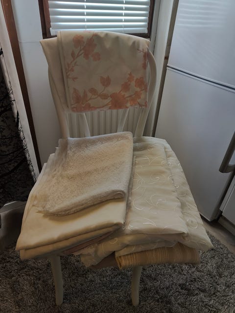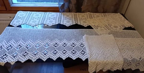 15 €Käsinvirkattu kappa 165 cm ja 2 pöytäliinaa yhteishintaJyväskylä, Keltinmäki, Keski-Suomi14 tLisää suosikiksi.
