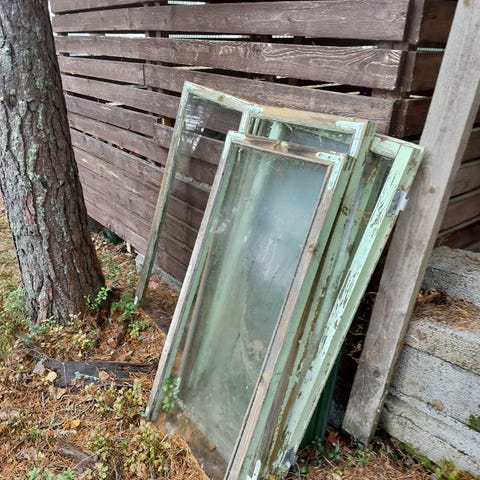 Vanha vihreä puinen ikkunakehys