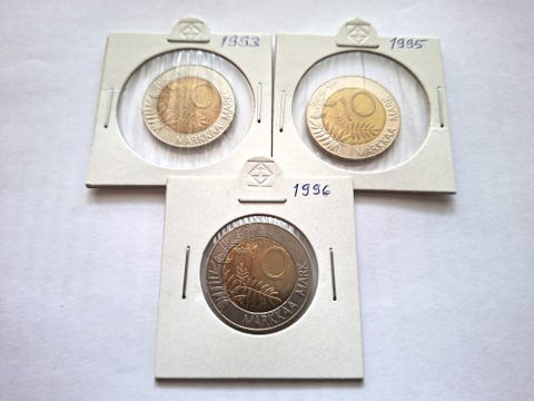 6 €Kymmenen markan kolikot 1993, 1995 ja 1996Jyväskylä, Mannila-Taulumäki, Keski-Suomi19.10.Lisää suosikiksi.