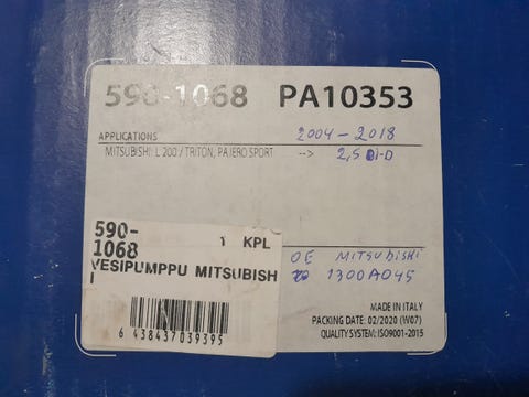 50 €Mitsubishi L 200 vesipumppu MitsubishiPetäjävesi, Petäjävesi Keskus, Keski-Suomi3 pvOsta hetiLiikkeessä oleva kuorma-autoToriDiiliLisää suosikiksi.