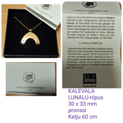 29 €Harvinaisempi Uudenveroinen KALEVALAN LUNALU-riipus, sopii lahjaksi, pronssiJyväskylä, Kuokkala-Ristikivi, Keski-Suomi3 pvLisää suosikiksi.