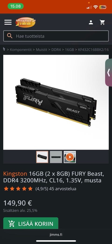 200 €Kingston 32GB (4x8GB) FURY Beast, DDR4 3200MHz, CL16, 1.3Siilinjärvi, Siilinjärvi Keskus, Pohjois-Savo23 tLisää suosikiksi.