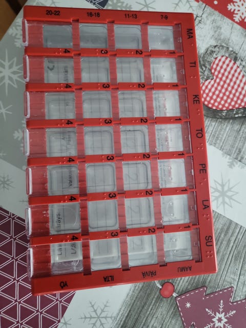10 €Lääkedosetti viikkodosetti punainen muoviSiilinjärvi, Toivala, Pohjois-Savo21.2.Lisää suosikiksi.