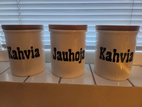 12 €Keramiikka säilytysastiat kahville, jauhoille ja kahvijauheelleJoensuu, Noljakka, Pohjois-Karjala23.1.Lisää suosikiksi.