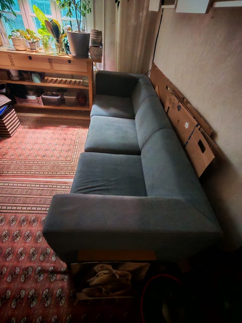 150 €Harmaa kangasvuorattu sohva kolmelle istujallePori, Yyteri-Kaanaa, Satakunta1.11.Lisää suosikiksi.