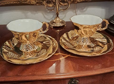 70 €Todella upea käsinmaalattu kullanvärinen pitsiposliini kahvikalusto.Pori, Sampola, Satakunta25.10.Lisää suosikiksi.