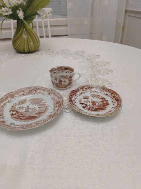 MyydäänKultakeramiikka vaaleanpunaiset mukit lautasineenPori, Kalaholma-Väinölä, Satakunta25.10.Lisää suosikiksi.