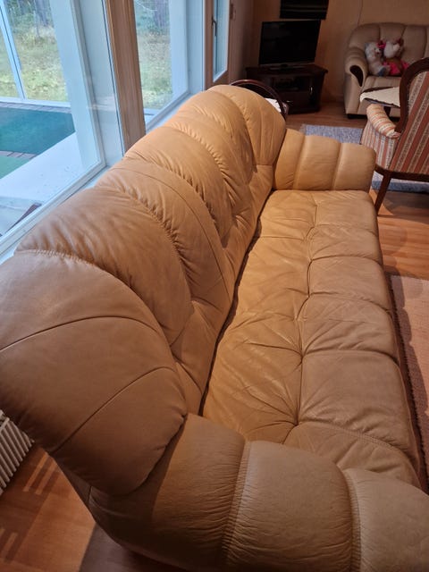 Jykevä nahka sohva.