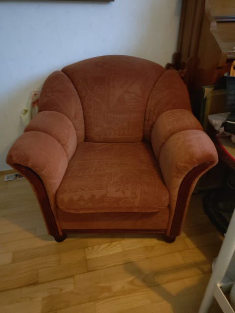 Kangasverhoiltu nojatuoli ruskea