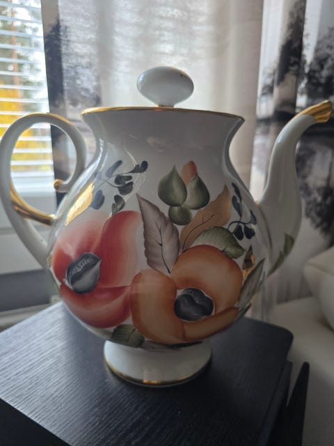 80 €Posliinikannu hedelmäkuvio, valkoinen ja kullanvärinenSastamala, Vammala Asemanseutu, Pirkanmaa15.10.Lisää suosikiksi.