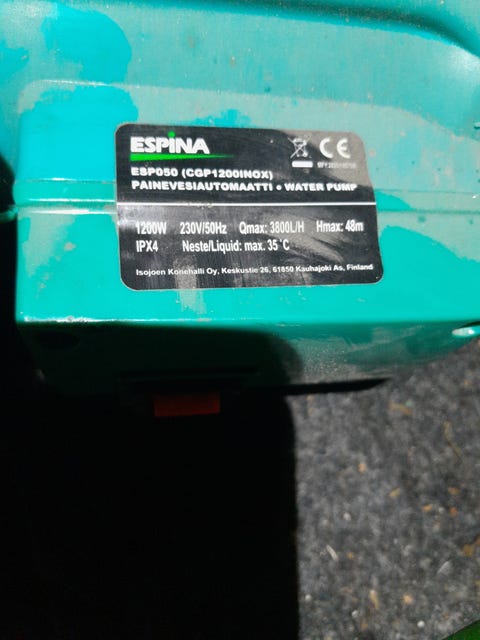 10 €Espina ESP050 painevesiautomaatti vesipumppu 110W 230VMänttä-Vilppula, Vilppula Keskus, Pirkanmaa30.11.Lisää suosikiksi.