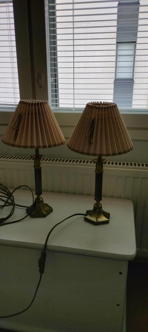 70 €Myydään 2 kpl messinkijalkaista pöytälamppuaKangasala, Kangasala Keskus, Pirkanmaa1.12.Lisää suosikiksi.
