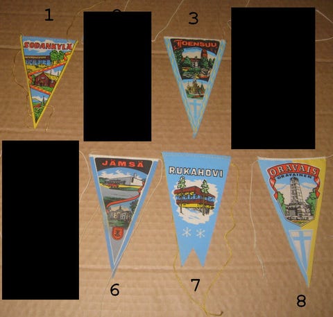 MyydäänPikkuviirit (Sodankylä, Joensuu, Kemijärvi, Ivalo, Utsjoki, Kuopio ym.) - 26 kplTampere, Tesoma, Pirkanmaa30.10.Lisää suosikiksi.