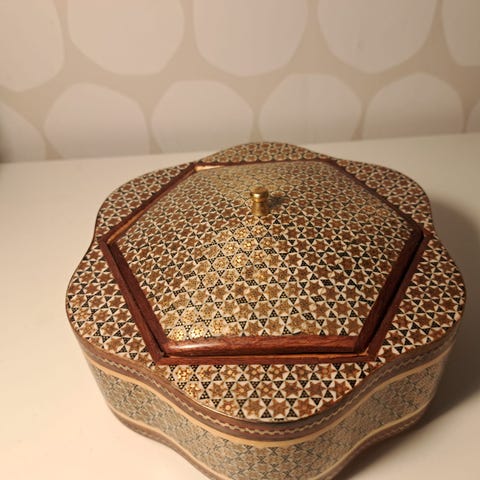 55 €Koristemaalaus kuusikulmainen puulaatikko kannellaTampere, Tampere Keskus, Pirkanmaa4.12.Lisää suosikiksi.