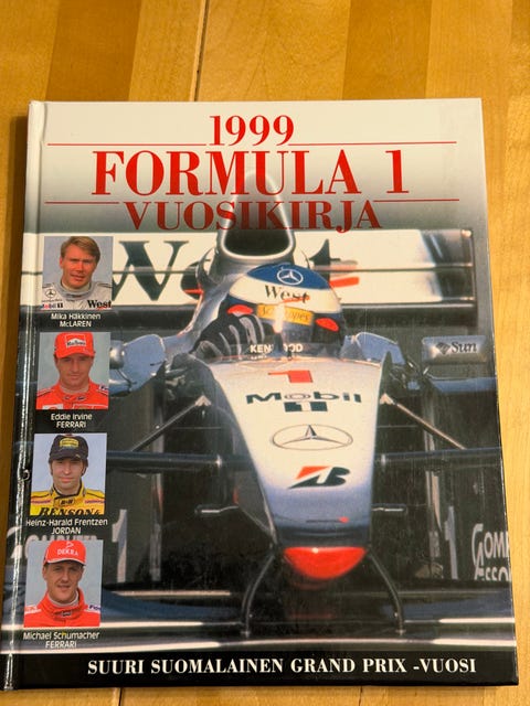 20 €Formula 1 Vuosi Kirja 1999 ja Ruutulippu Moottoriurheilun Vuosi 1994Ylöjärvi, Vuorentausta, Pirkanmaa12.12.Lisää suosikiksi.