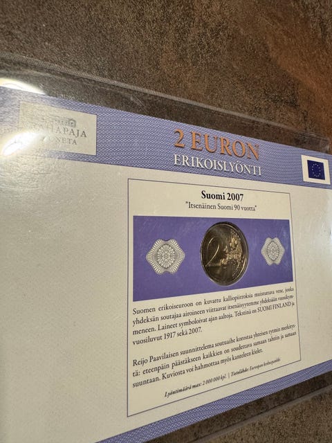 16 €Kahden euron keräilykolikko,Suomi 2007 itsenäinen Suomi 90vValkeakoski, Vääräkoivu, Pirkanmaa17.10.Lisää suosikiksi.