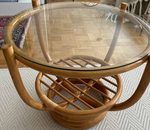 25 €Myydään hyväkuntoinen rottinkipöytä lasikannella.Lahti, Kiikkula, Päijät-Häme30.9.Lisää suosikiksi.