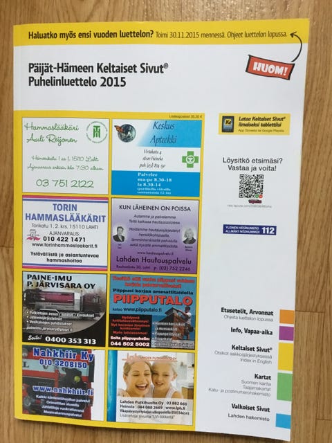 5 €Päijät-Hämeen Keltaiset Sivut -luettelo 2015Lahti, Tenava-Tonttila, Päijät-Häme25.10.Lisää suosikiksi.