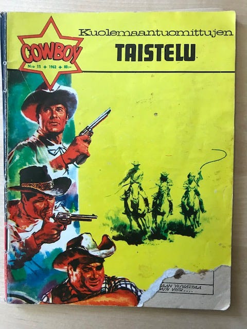 10 €Cowboy No 11 / 1962 Kuolemaantuomittujen taisteluLahti, Metsäkangas, Päijät-Häme20.10.Lisää suosikiksi.