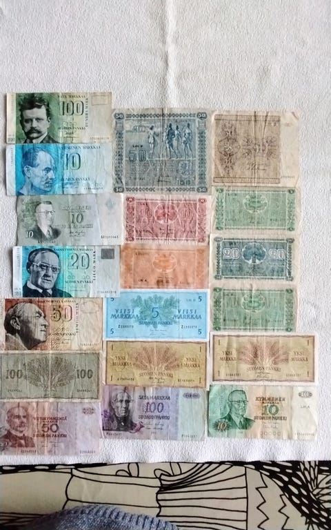 70 €Suomalaiset vanhat setelit markka ajalta 1939-1993 vuosilta 19 kpl.Lahti, Keski-Lahti, Päijät-Häme5.10.Lisää suosikiksi.