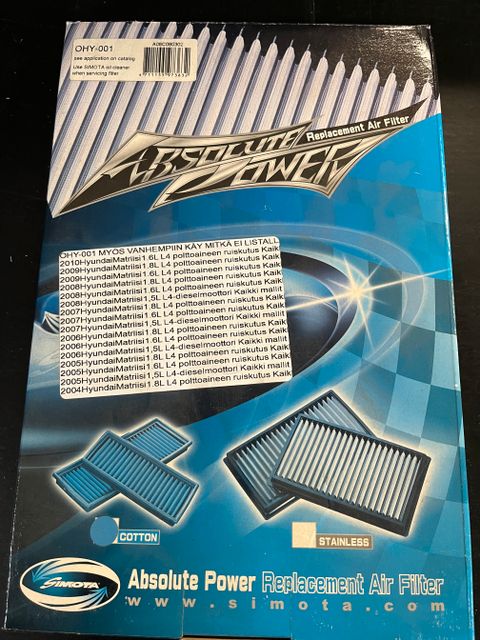 15 €Simota vapaavirtaus ilmansuodatin Hyundai Kia. Ilmainen toimitus!Orimattila, Orimattila Keskus, Päijät-Häme11.4.2025OutletosaLisää suosikiksi.
