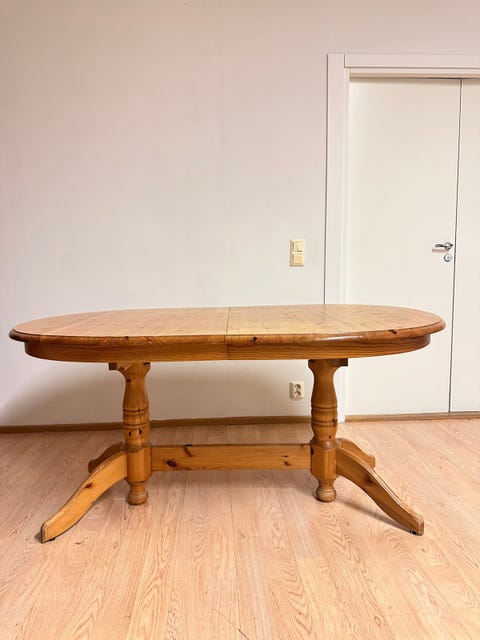 Kokopuinen mäntyinen ruokapöytä