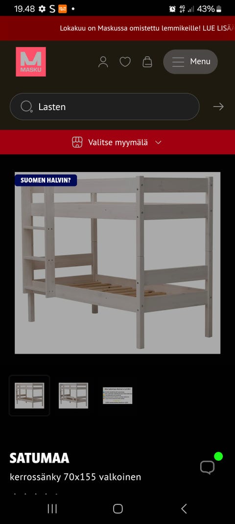 220 €Hästens tyyny (ovh 440)Lahti, Lahti Asemanseutu, Päijät-Häme1 pvVepsäläinen, LahtiLisää suosikiksi.