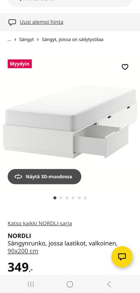 Sänky 90cm ja petari