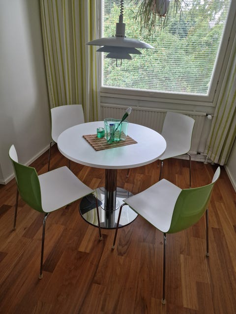 400 €Pyöreä valkoinen pöytä metallijaloilla ja neljä muovituoliaLappeenranta, Hanhijärvi, Etelä-Karjala7 pvLisää suosikiksi.