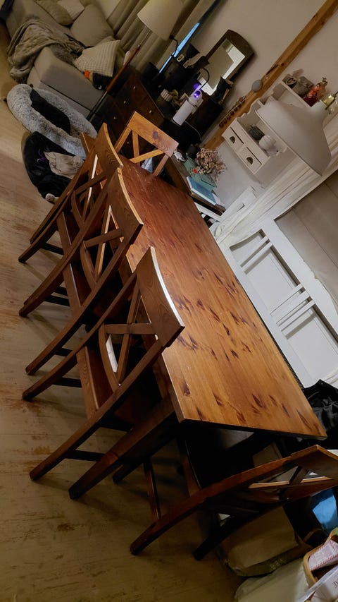 50 €Tumman ruskea puinen 6hengen ruokapöytä ja 5 tuoliaLappeenranta, Lauritsala-Mälkiä, Etelä-Karjala1 pvLisää suosikiksi.