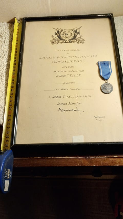 250 €1.luokan vapauden mitali ja kunniakirja, vuodelta 1942Savitaipale, Savitaipale Keskus, Etelä-Karjala21 tLisää suosikiksi.